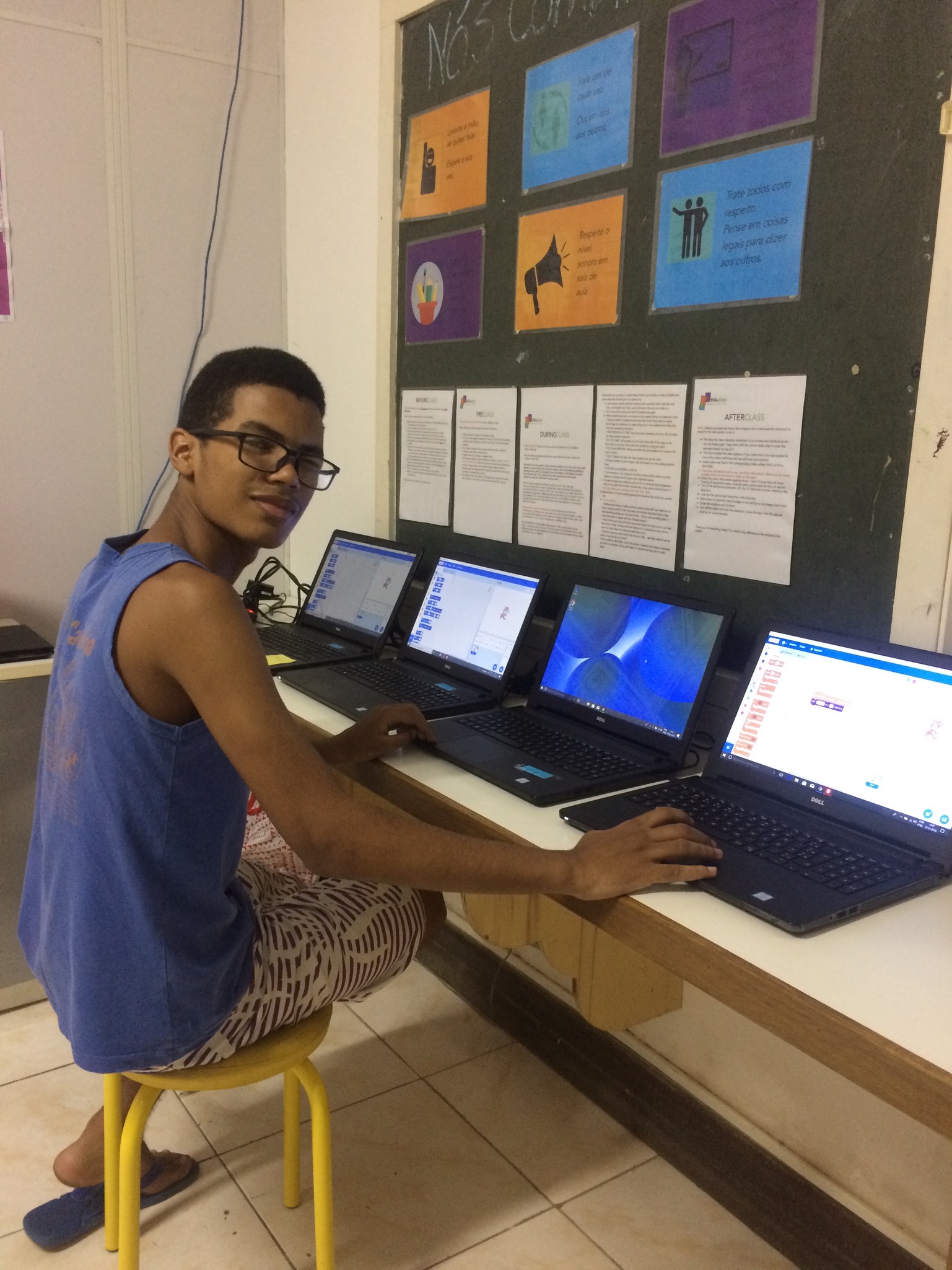 Today I was very fortunate to have had the chance to talk to two EduMais volunteers. Roger told me about the game design classes he teaches and Hannah shared her experience as a volunteer at the after-school program. Let me share with you what I have learned and how Edumais broadens horizons!