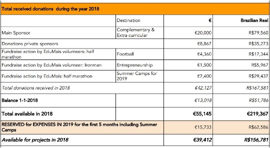 The financial report (see below) provides a clear picture of EduMais’ bank account.